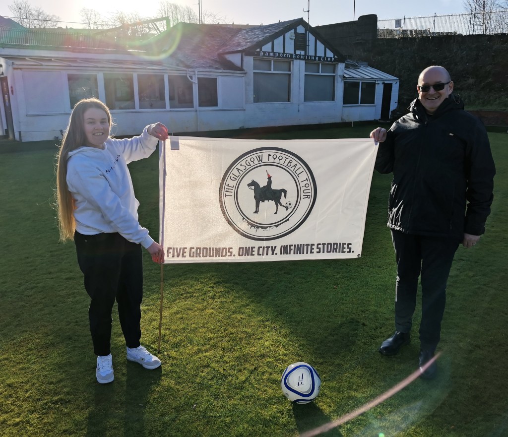 Graeme explains, ‘The football tour is there to explain how Football’s Square Mile needs to be recognised by the world and the wonderful community within it. Therefore when we teamed up with Glasgow Football Tour we decided a share of the proceeds should go to a community cause. The 2021 tours had a charitable cause in mind, with a share of the proceeds donated to Hampden Bowling Club. The Tours exceeded all expectations, and we have donated £400 towards a community project close to our hearts.”